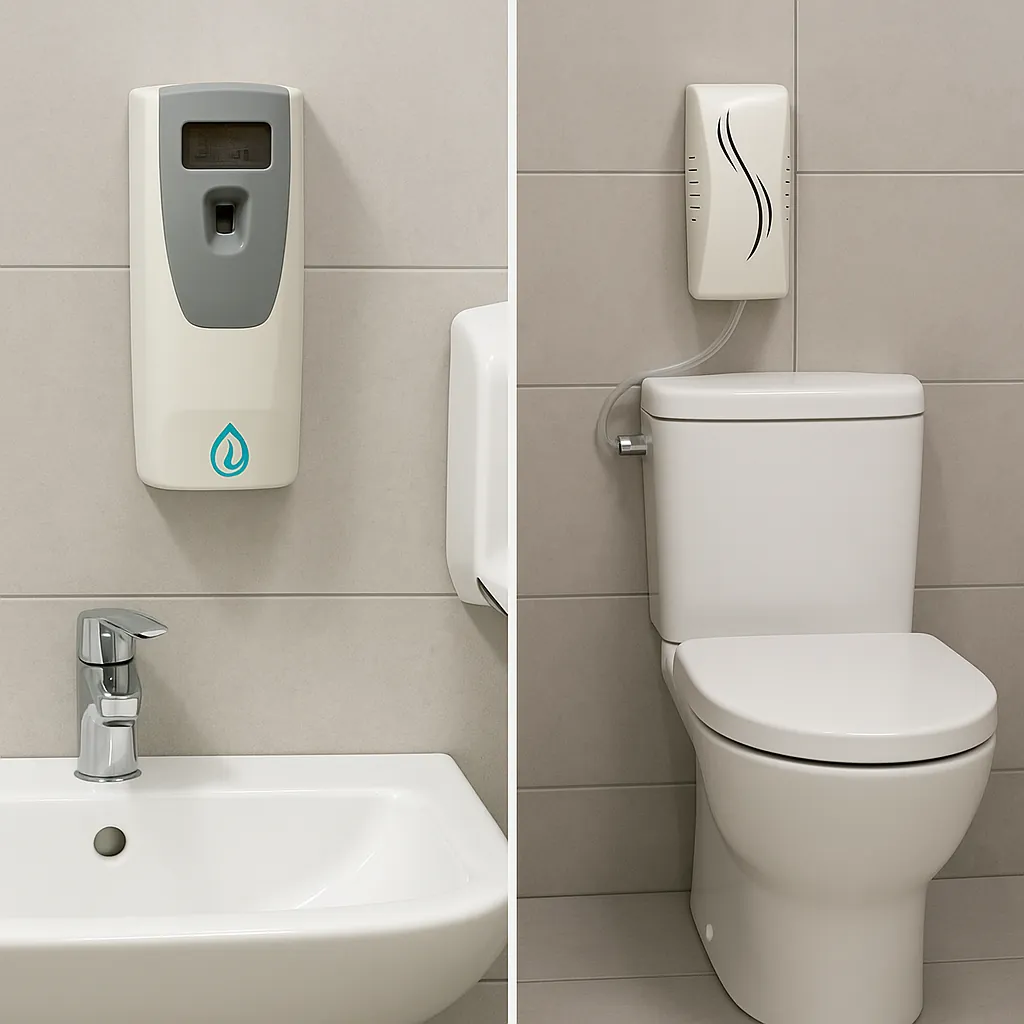 Higienización y aromatización para baños y áreas de alto uso: equipos, insumos y reposición planificada para mantener sensación de limpieza constante. Además, equipos complementarios como secamanos y dispositivos para baños.