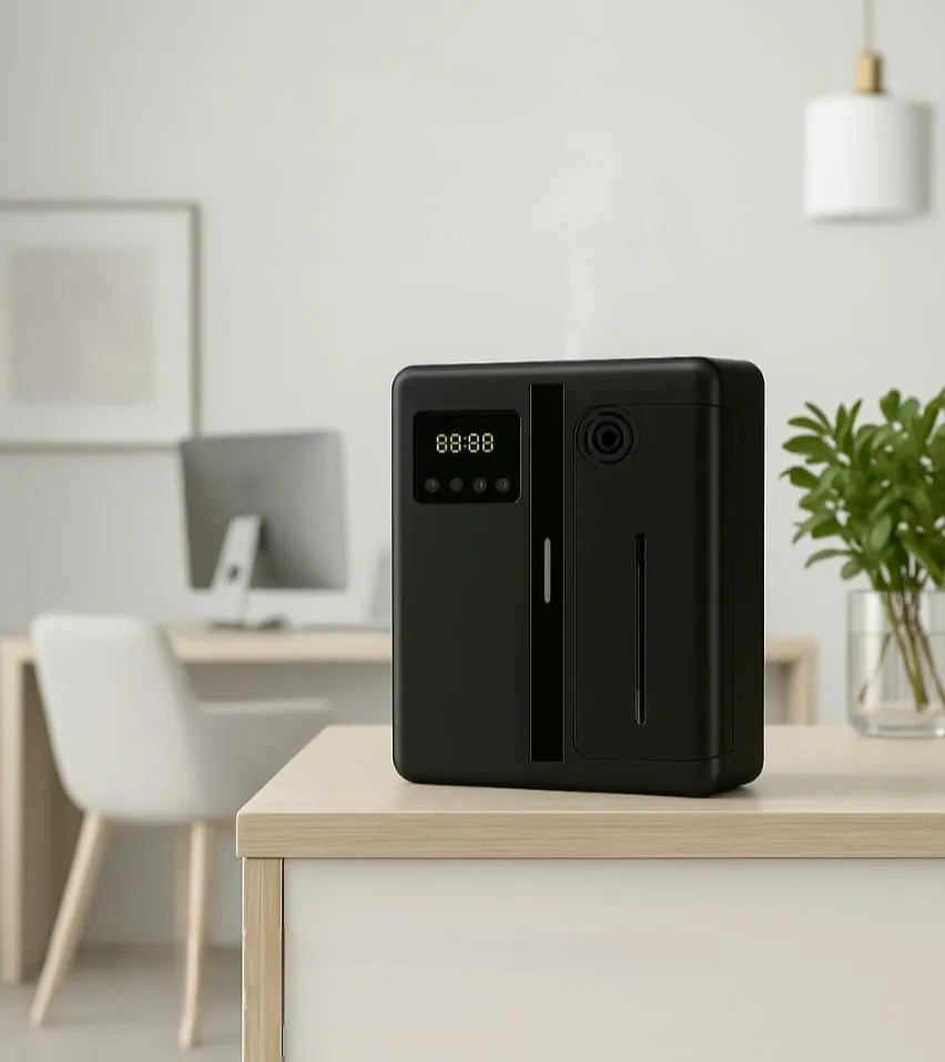 Nebulización en frío: convierte la fragancia en micropartículas y las difunde de forma homogénea sin agua ni calor. Resultado: aroma constante y limpio.